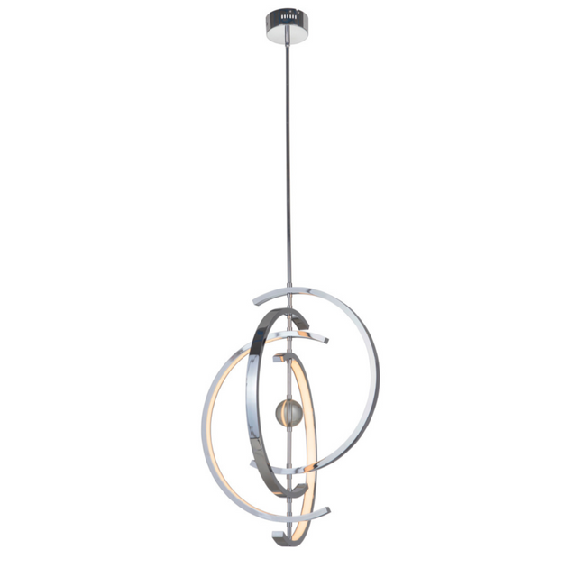 Send your decor into Orbit with the Craftmade Anillo 4 Crescent LED Pendant Chrome 42722-CH-LED . Featuring a prominent, three-ring configuration that tricks the eye, this suspended fixture is minimalism in motion. A modern masterpiece that seamlessly blends innovative design and energy-efficient technology to illuminate your space in style. Craftmade's Anillo 4 Crescent LED Pendant is a striking example of contemporary elegance. Its sleek chrome finish and unique crescent-shaped design make it a captivating focal point for any room, from modern living spaces to chic offices.